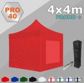 40+ Promo pakket 4x4m: Profiteer van onze professionele vouwtent, bestaande uit een 40mm Spidtec aluminium structuur met een nylon 380 gr. PVC coated dakzeil. Waterdicht en UV bestendig, brandvertragend certificaat M2 dakzeil.
