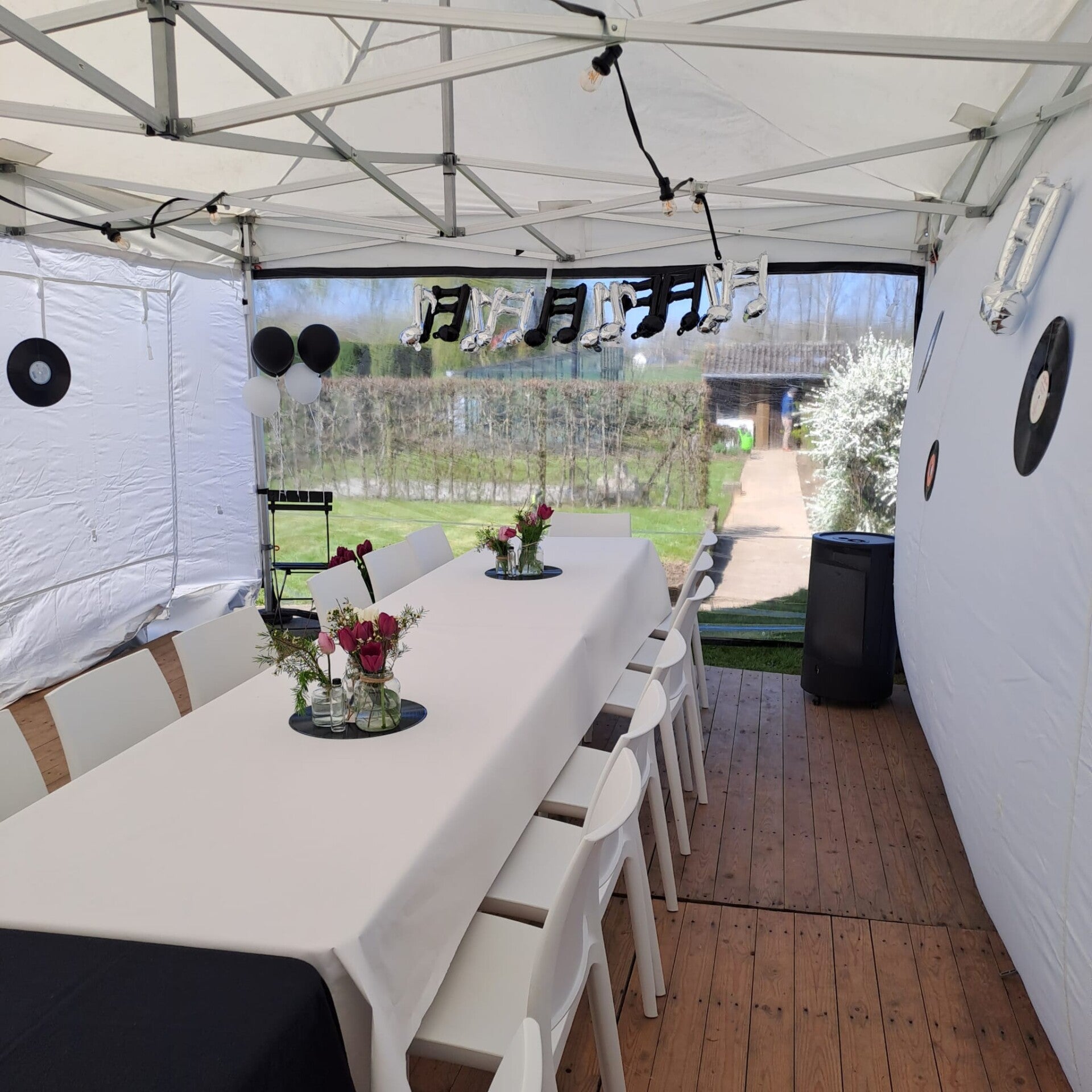 Op- en afbouw mits hulp klant/ huurder: De tent wordt samen opgebouwd en afgebroken met hulp van de huurder (max. 20min + 2 pers. voorzien)