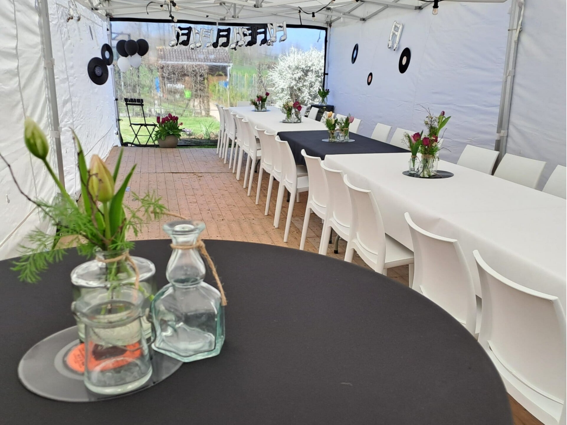 Op- en afbouw door TentenEvent: De tent wordt volledig opgebouwd en afgebroken door ons mits de laad- en losplaats op max. 15 meter ligt. Anders worden er extra kosten aangerekend.